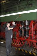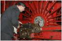 Wie jede andere Lok unterliegt auch die 18 201 normalen Wartungszyklen. Dieses Mal sind Treibachsen an der Reihe. Die 2,30 m hohen Achsen müssen reprofiliert werden. Auf gut deutsch, sie müssen abgedreht werden.