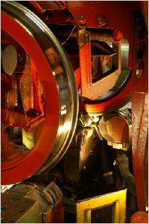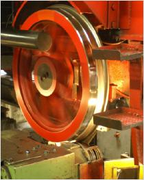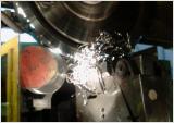Der technische Ablauf ist folgender: Die Lokomotive wird auf die Maschine gefahren. Die Maschine hebt am Spurkranz den zu bearbeitenden Radsatz leicht an und die Schienenbrücken werden zur Seite geschwenkt. Der Radsatz steht jetzt nur auf der Hebevorrichtung der Maschine. Nun werden die Antriebsrollen, zwei auf jeder Seite an den Spurkranz gefahren und die Hebevorrichtung gesenkt. Der Radsatz steht nun, freibeweglich, mit dem Spurkranz auf den Rollen. Nun erfolgt ein erstes Messen und Rechnen und Messen... Nachdem die Maschine eingerichtet wurde und der Rundlauf des Spurkranzes geprüft wurde, werden die Laufflächen gedreht. Je nach Spanstärke beide gleichzeitig oder eine nach der anderen. Die Lauffläche wird bearbeitet. Der Radsatz läuft auf den Spurkranz und drückt nur mit der eigentlichen Achslast dieses Radsatzes auf das Werkzeug. Nach dem die Laufflächen genau auf Maß gedreht sind wird die Maschine "umgesetzt" und der Radsatz läuft nun mit der eigentlichen Lauffläche auf den Rollen. Der Spurkranz ist frei, zur Bearbeitung. Zwischendurch und Abschließend wird gemessen und protokolliert. Die Lauffläche ist fertig bearbeitet. Die Maschine ist umgesetzt. Der Radsatz steht nunmehr auf der Lauffläche. Das Werkzeug ist versenkt. Unter dem Radsatz, zwischen den Rollen ist ein Messgerät eingelegt.Die Form des Radreifens "liest" oder tastet die Maschine auf jeder Seite von einer eingespannten Lehre ab. Somit ist es möglich verschiedene Formen zu drehen. Beide Seiten der Unterflurdrehmaschine drehen den jeweiligen Radreifen völlig unabhängig voneinander.