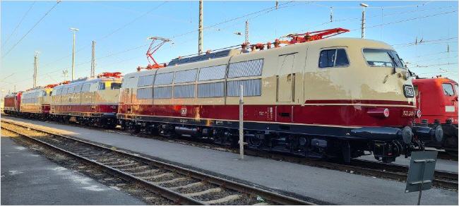 Das sind die drei großen Standbeine unserer Werkstatt. Die Wartungs- und Instandhaltungsarbeiten werden natürlich großgeschrieben. Zum einen haben die Fahrzeuge auf der Schiene natürlich auch Intervalle in den sie geprüft, gewartet und instandgehalten werden. Wir nennen das "Frist". Die Frist ist mit einer Inspektion beim Auto vergleichbar. Aber um ein Vielfaches intensiver und umfangreicher. Und natürlich gibt es auch bei der Bahn Historische Fahrzeuge, die gewartet werden müssen. Nicht unbedingt Dampfloks aber alte Loks aus Museumsbeständen finden hier aufmerksame Augen und Hände. So auch die einstigen Paradepferde der Bahn, die Baureihe 103.