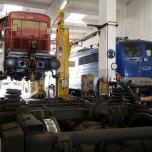 Richtig los geht es aber wenn die Lok von den Drehgestellen abgehoben wird. Um dann die Drehgestelle oder auch die einzelnen Achsen von einer Diesellok zu tauschen, ist der Aufwand schon groß. Aber ich glaube die Spitzenreiter sind die Motoren oder das Getriebe einen Diesellok. Auch sie werden bei uns getauscht. Mit einem Gewicht eines Kleinwagens können die nur mit einem leistungsfähigen Portalkran bewegt werden.