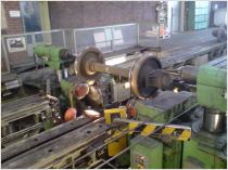 Seit Jahrzehnten ist die Drehbank oder wie sie eigentlich richtig heißt Unterflurradsatzdrehmaschine (URD) unsere große Stütze. Die Mitarbeiter die sie bedienen müssen, gerade bei schlechter Witterung, immer mal wieder Sonderprogramme fahren damit das Schadlokaufkommen bewältigt werden kann. Ober DB Lokomotiven oder Privatbahnen oder auch uralte Dampfloks aus historischen Epochen, alle sind stets willkommene Gäste auf der URD. Auch wenn die Planung hierfür ein Höchstmaß von Flexibilität und Einsatzbereitschaft verlangt sind die Kollegen gerne bereit dieses zu tun. Es ist ihre Passion, Achsen wieder Rund zum machen. Aber auch die vielen Routineuntersuchungen die auf der URD erledigt werden schrecken sie nicht... So werden zum Beispiel äußerst genau die Durchmesser der Räder auf der Drehbank ermittelt. Hier benutzt man einfach die Länge, die ein Rad den Umfang entlang fährt und nimmt die Festzahl 'Pi' um damit den Durchmesser zu ermitteln, ähnlich wie es auch ein Fahrradcomputer am Rad macht.
