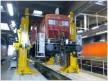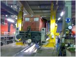 Jetzt können uns die neuen Hebeböcke genauso lange gute Dienste erweisen wie ihre Vorgänger. Wie man hier sehen kann, ließ die erste Benutzung auch nicht lange auf sich warten. Erwartungsgemäß lief die Aktion ohne Probleme ab. Heute wurden die Drehgestelle von einer Diesellok getauscht, morgen vielleicht schon ein Motor oder ein Getriebe...